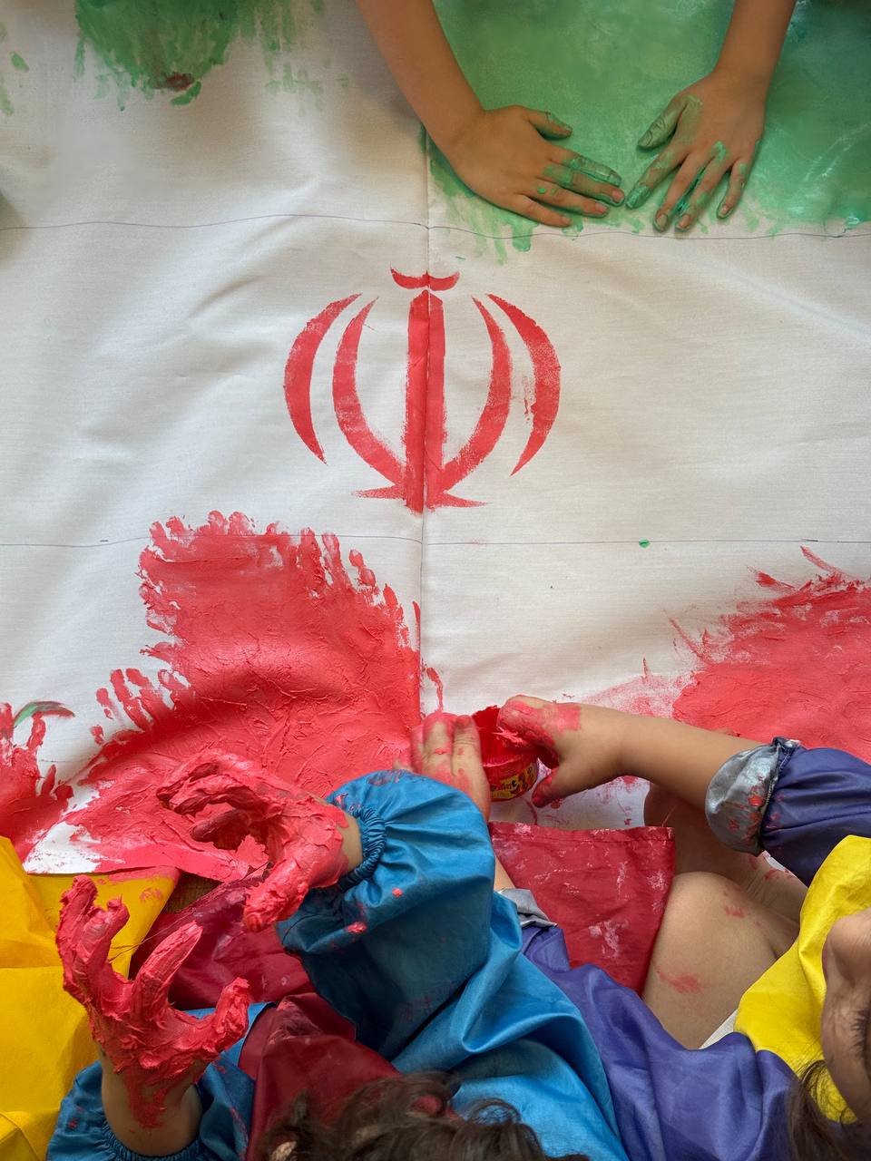 بچهها این بار نه با قلممو، بلکه با دستهای کوچولوشون، با عشق و ذوق، پرچم قشنگ کشورمون ایران رو رنگآمیزی کردن.